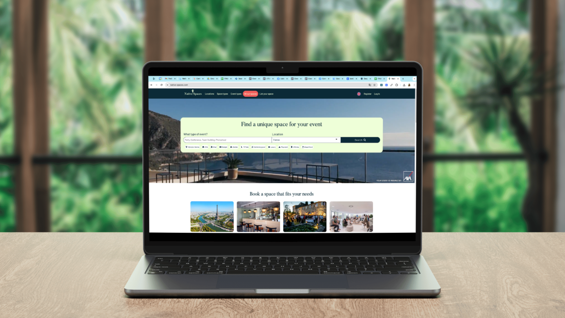 Une solution qui vous permet de réserver ou de louer en toute sécurité des lieux et des propriétés hors du commun (et sous-utilisés) pour des événements privés ou professionnels. Actuellement, nous travaillons avec plus de 1700 lieux uniques en France (70% de nos options sont des propriétés privées): rooftops avec vue sur la Tour Eiffel, restaurants avec salons privés, appartements haussmanniens, grands lofts en centre-ville, bars funky, péniches, villas vue mer...) et nous pouvons également aider à nos clients à trouver des prestataires locaux pour tous ses besoins (traiteurs, chauffeurs...).