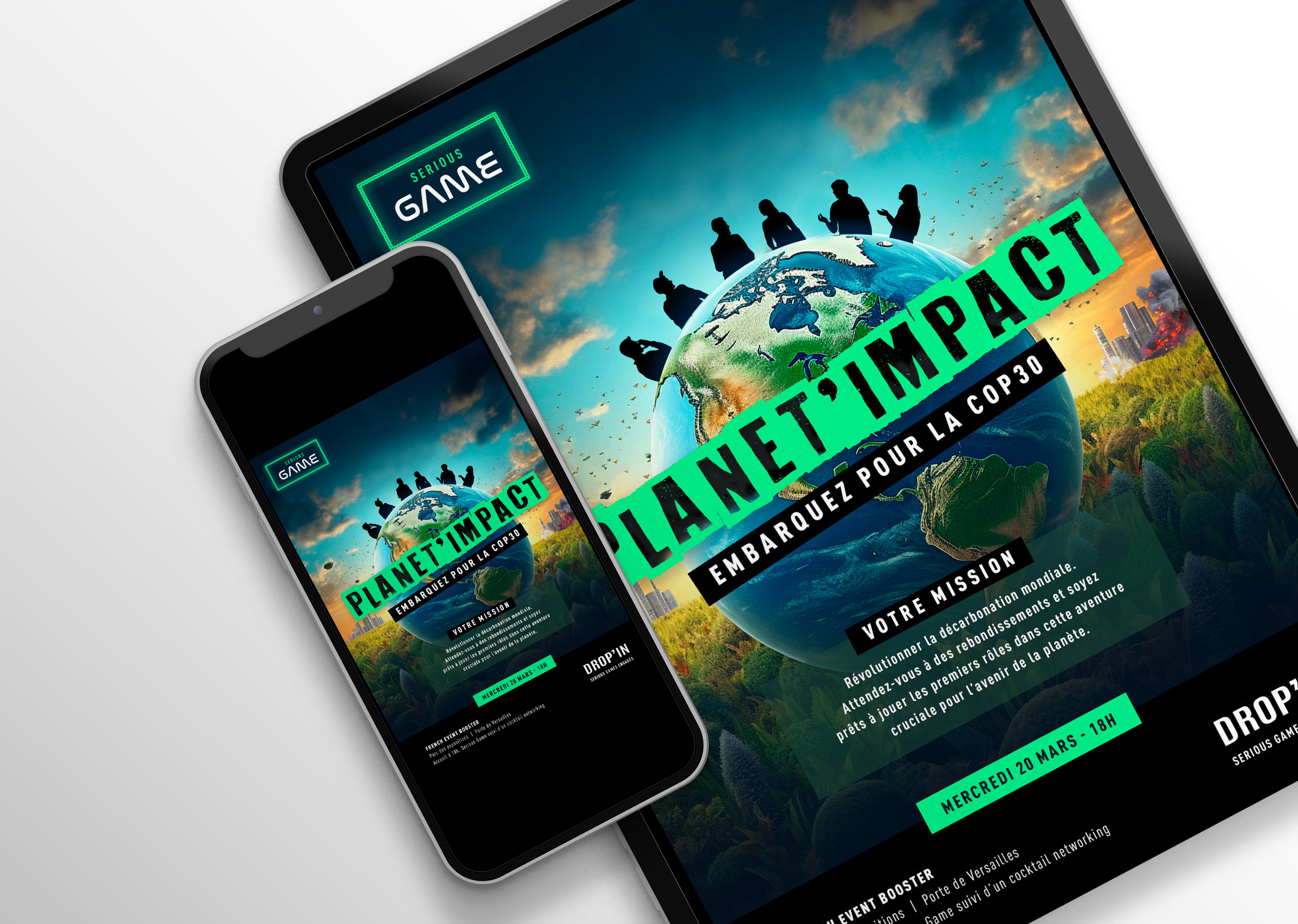 - Drop'in conçoit des Serious Games Responsables pour booster l'engagement durable des collaborateurs. A l'image de notre Serious Games "Planet'Impact", sur la décarbonation, nous sensibilisons et engageons avec une démarche inspirante, positive et ludique lors d'un événement physique avec une expérience digitale.